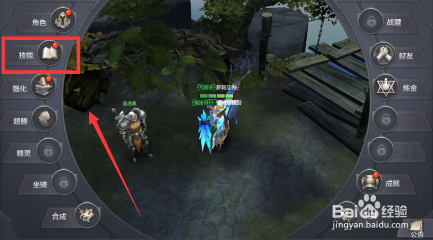 在功能菜单中,玩家需选择“技能”这一选项,进入技能管理页面。该页面详细展示了角色当前已学习的所有技能及其等级状态。